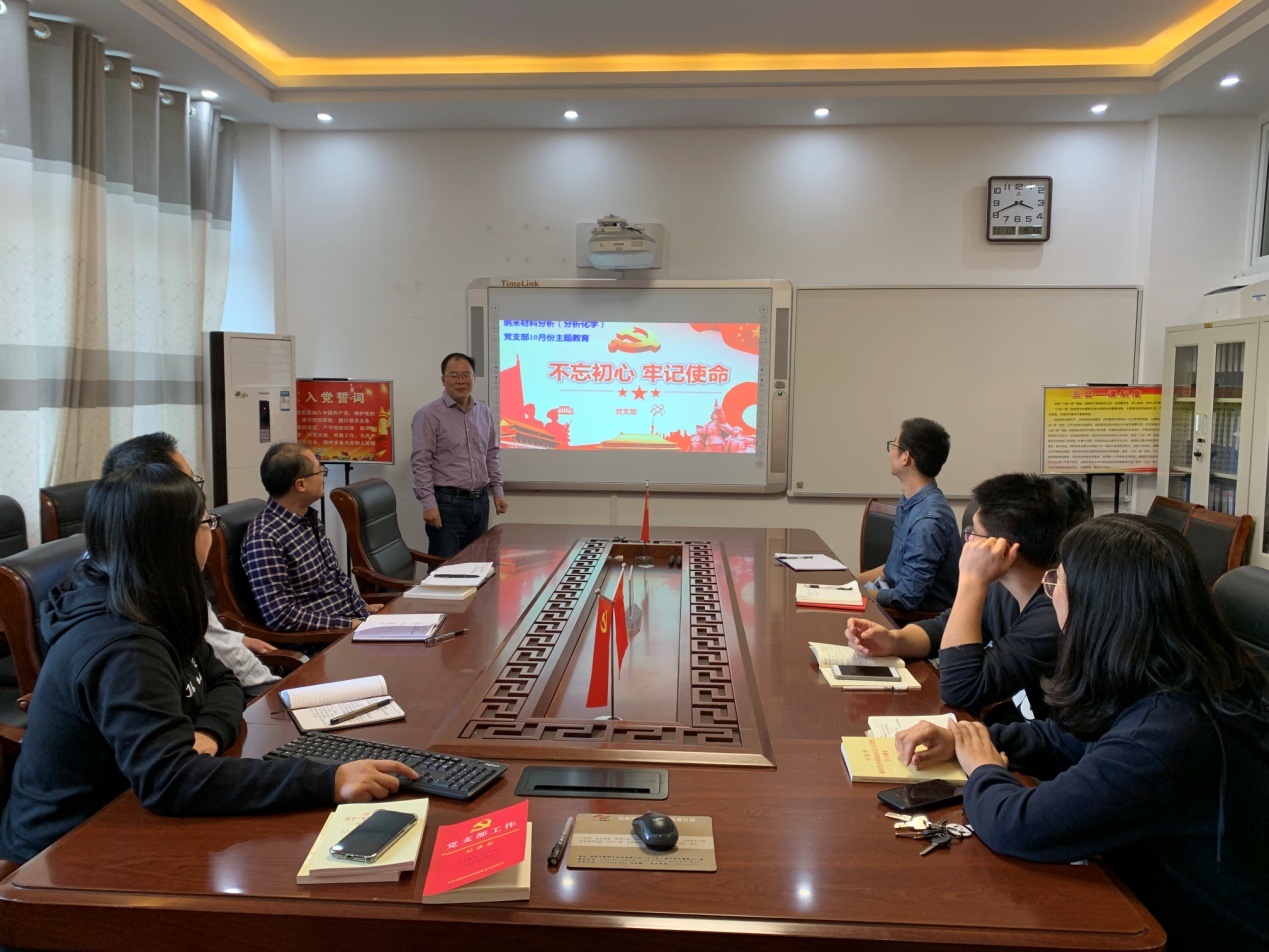 为了深入扎实开展“不忘初心、牢记使命”主题教育,激发广大党员守初心,担使命的责任感。10月29日下午,球王会纳米材料分析科技团队党支部在实验楼“党员之家”会议室召开了“不忘初心跟党走、牢记使命见行动”集中学习研讨会,研讨会由支部书记黄克靖主持。