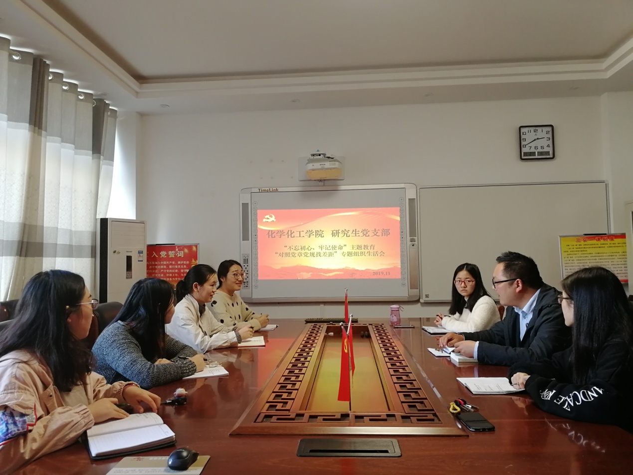 11月1日下午,球王会研究生支部在化学楼313会议室召开“不忘初心、牢记使命”主题教育对照党章党规找差距改专题组织生活会,研究生支部党员参加了会议,会议由支部书记曹俊涛同志主持。