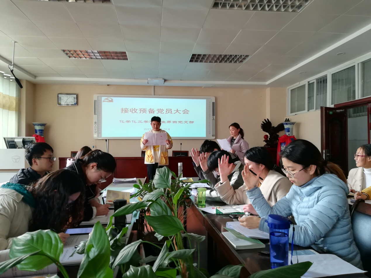 11月22日中午,球王会员工第四党支部在实验楼407会议室召开预备党员接收支部大会。第四党支部王露洁同志主持本次会议。
