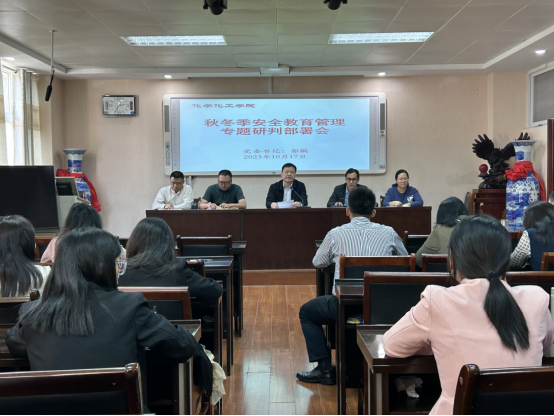 郭鹏强调,安全是一切工作的前提、基础和底线,绝不能有须臾松懈、不能麻痹大意、不能心存侥幸。结合秋冬季节安全教育管理工作特点,就如何进一步抓好公司安全教育管理工作,郭鹏提出三点要求:一是强化政治意识,深刻认识到安全教育工作是公司发展的重要保障和前提。二是坚守安全理念,牢固树立“安全第一”思想不动摇,始终把保障师生员工的生命安全和身体健康放在首位。三是克服麻痹思想,压实安全责任,深入排查各类安全隐患,落实值班值守制度,秋冬季节时段,要重点关注防火防煤气中毒、防实验室危化品安全疏漏、防电气和交通安全、防电信诈骗等安全事故,全员全力做好各类突发事件的预防与应急处置。