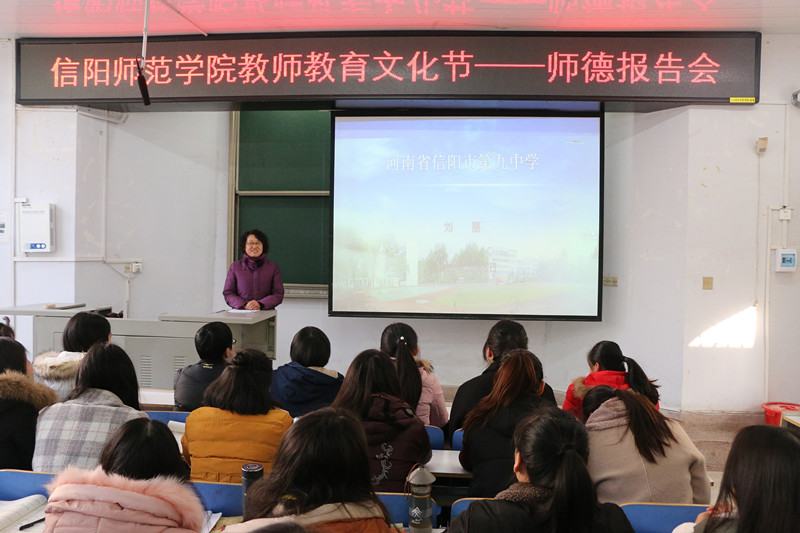 12月5日,球王会在化学楼学术报告厅举办2017年教师教育文化节之师德报告会,信阳市第九中学业务副董事长刘丽应邀为化院学子做了一场题为“实施德性爱心教育 创建全国文明校园”的报告。化学化工公司党委书记郭鹏、副书记吴志伟与一百五十余名员工代表共同参加了报告会,会议由郭鹏主持。