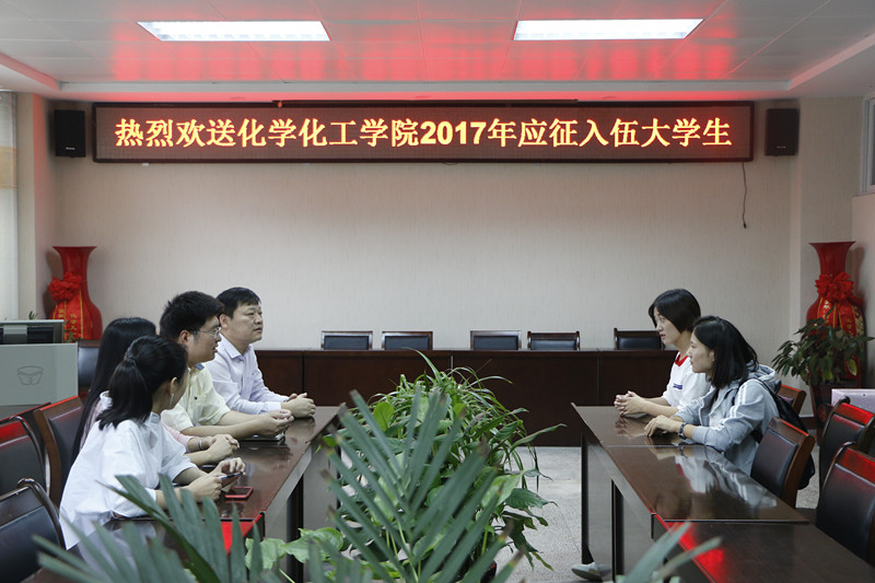 9月22日下午,球王会在化学实验楼407会议室欢送应征入伍老员工邓椿侠,化公司党委书记郭鹏、党委副书记吴志伟,辅导员李中杰、王丽霞参加了欢送仪式,一起座谈的还有刚刚服役归来的入伍老员工刘丽霞。