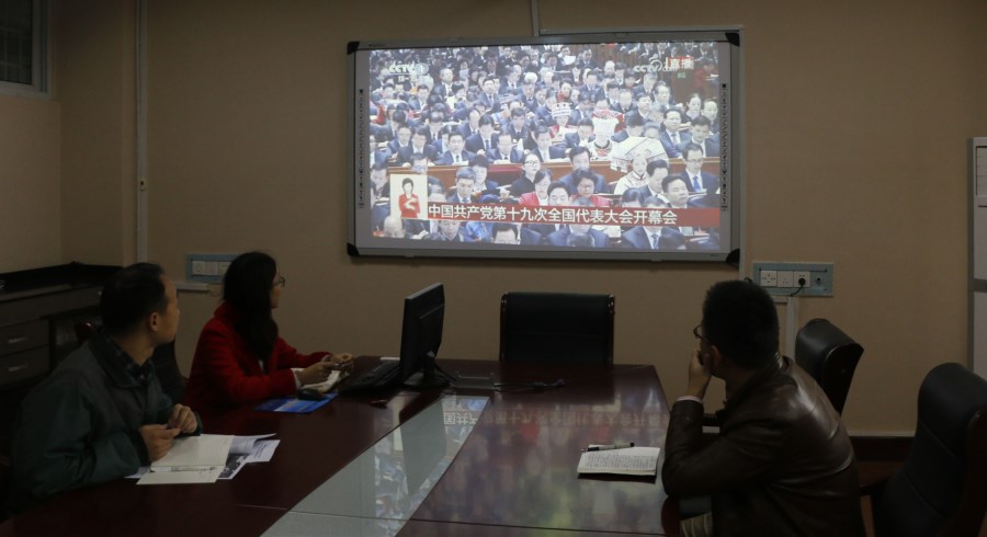 10月18日上午,中国共产党第十九次全国代表大会在北京人民大会堂隆重开幕,球王会师生积极有序收听收看党的十九大开幕盛况,认真聆听了习近平同志代表第十八届中央委员会所作的报告。球王会领导、部分师生在化学实验楼407会议室和210小会议室,集体收看中共十九大开幕式盛况。