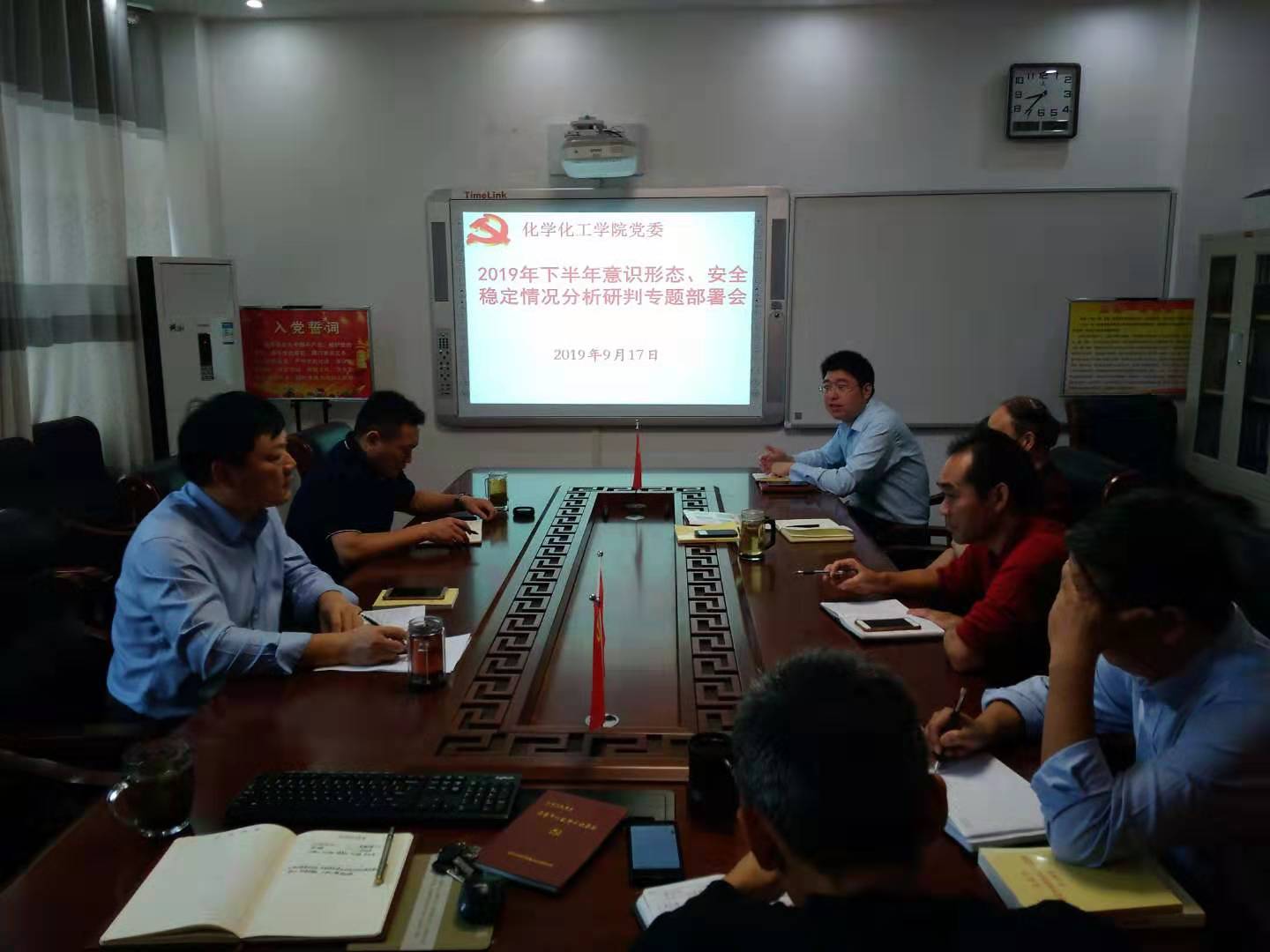 9月17日,化学化工公司党委召开2019下半年意识形态及安全稳定分析研判专题会,专项分析、研判并落实公司师生全面意识形态及安全稳定工作。党委书记郭鹏再次领学了有关意识形态及安全稳定工作的讲话和文件精神。
