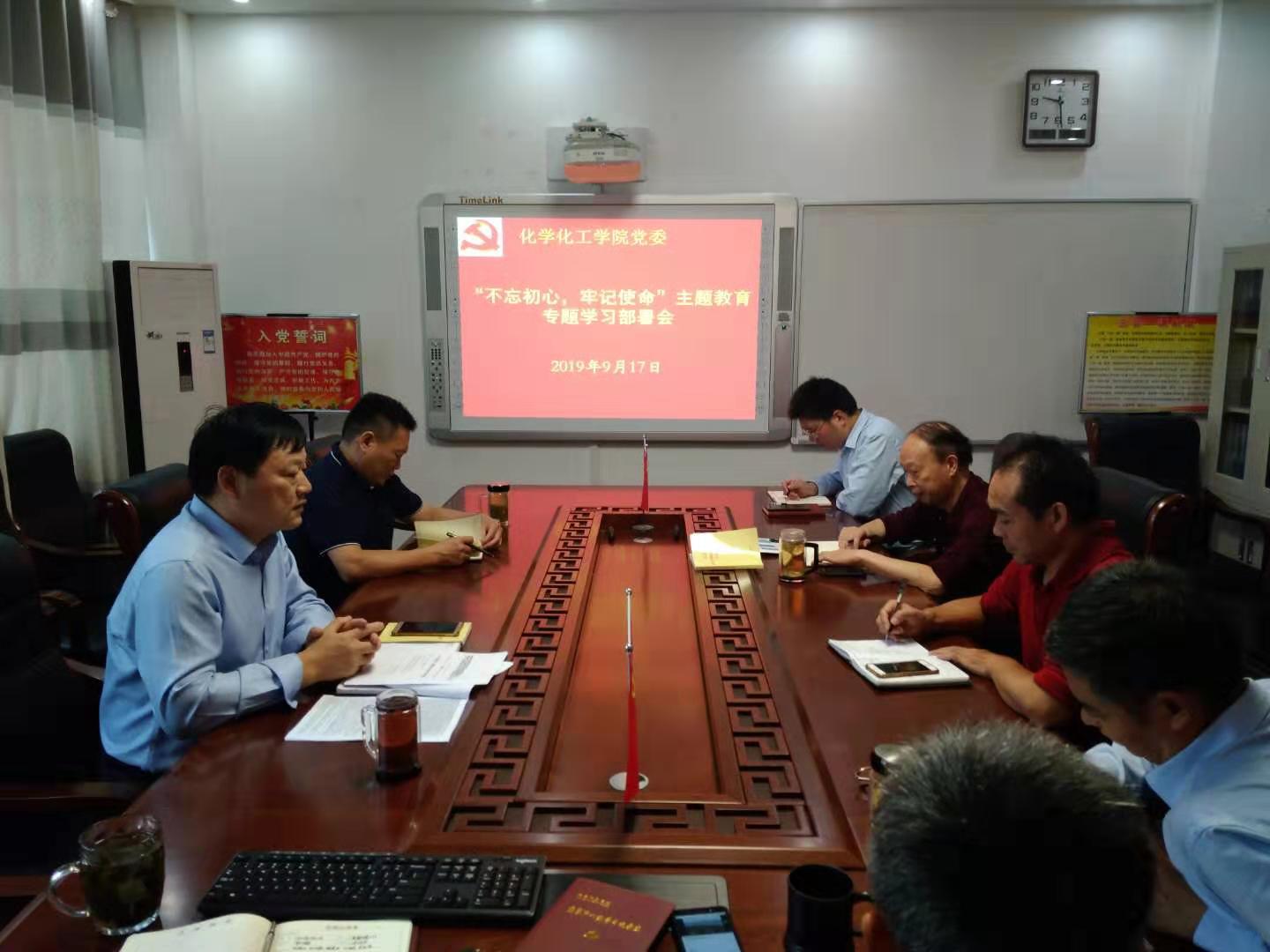 9月17日上午,化学与化工公司党委中心学习组在实验楼“党员之家”开展集体学习,传达、学习习近平总书记关于“不忘初心 牢记使命”主题教育的系列重要讲话精神,为公司主题教育打好思想基础,公司党委书记郭鹏主持会议。