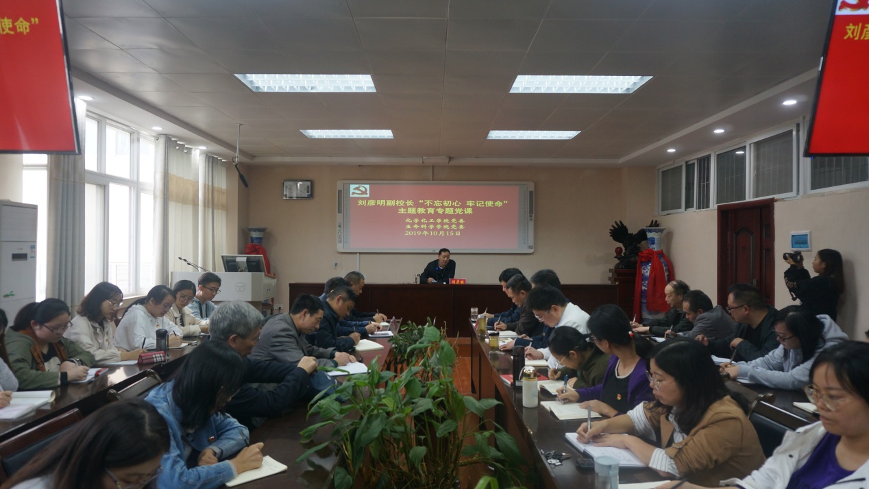 按照公司党委“不忘初心、牢记使命”主题教育领导小组安排,10月15日,副董事长刘彦明在化学实验楼407会议室为球王会、生命科学公司领导班子成员和师生党员作党课辅导报告,党课报告题为《增强特色,增进内涵,不断提升团队建设水平》,报告由化学化工公司党委书记郭鹏主持。