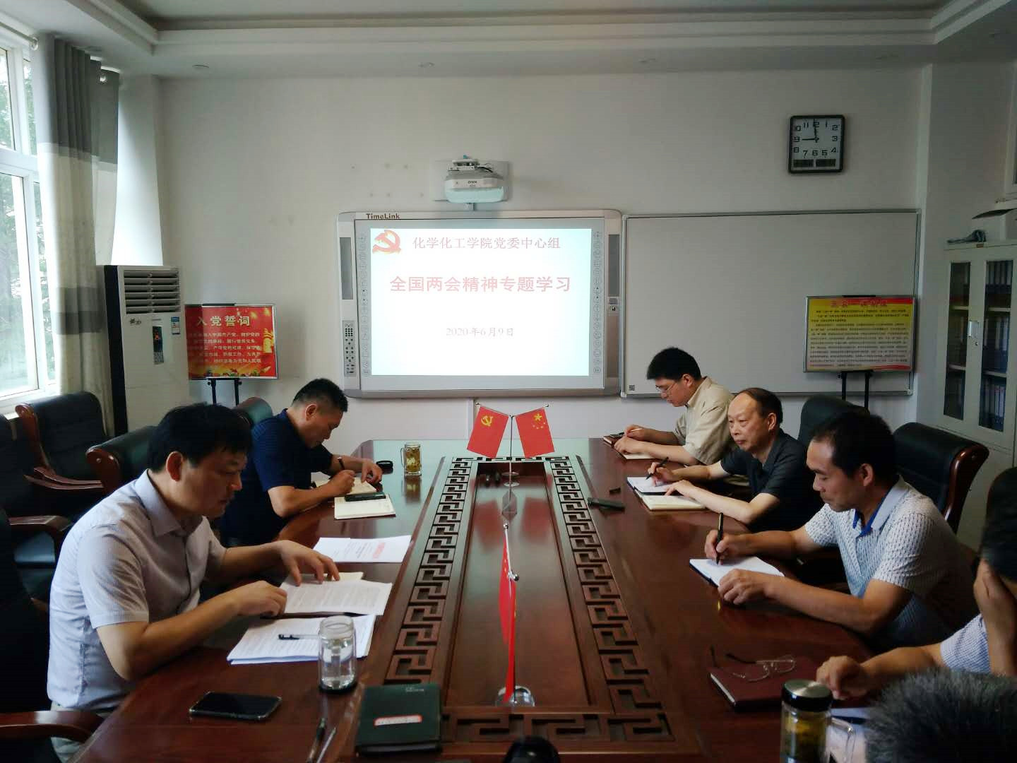 草木蔓发,春山已至。5月21日、22日全国政协十三届三次会议、十三届全国人大三次会议分别在北京召开,5月27日、28日圆满闭幕。为进一步学习贯彻“两会”精神,6月9日上午,化学化工公司党委理论学习中心组在化学实验楼三楼313“党员之家”,专门开展了全国“两会”精神线下专题学习,公司党委委员井强山、归风铁、骆定法、刘鹏等参加了学习。中心组学习由公司党委书记郭鹏主持。