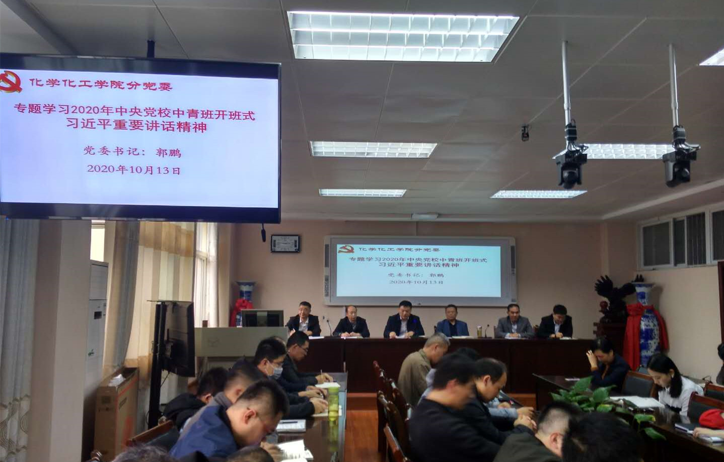 2020年10月10日,2020年秋季学期中央党校(国家行政公司)中青年干部培训班开班,习近平总书记在开班式上发表重要讲话。10月13日,化学化工公司党委理论学习中心组及时跟进学习习近平总书记10月10日重要讲话。党委中心组成员郭鹏、井强山、归风铁、骆定法、刘鹏、吴志伟等参加集体学习。学习活动由党委书记郭鹏主持,并进行宣讲、领学和解读。