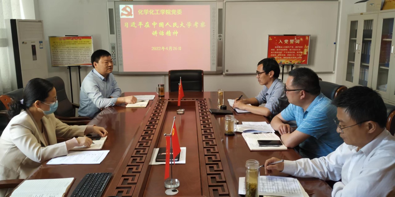 4月26日上午,化学化工公司党委理论学习中心组集体学习习近平总书记考察调研中国人民大学重要讲话精神,公司党委书记郭鹏,党委副书记曲剧,副经理曹俊涛、王红军、于永生,党委委员、专职组织员冷向宇参加。学习活动由郭鹏主持。