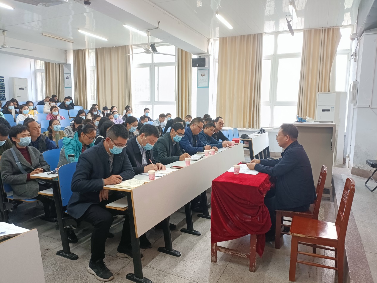 报告会上,唐国战教授作题为《深刻领会党的二十大会议精神,坚决落实立德树人根本任务》的辅导报告。报告紧扣党的二十大主题,紧密联系党中央重大决策部署和我国经济社会发展实际,从“深刻领会认识学习党的二十大精神的重大意义、深刻领会把握党的二十大报告鲜明的主题主线、深刻领会把握过去五年工作和新时代十年伟大变革、深刻领会认识开辟马克思主义中国化时代化新境界、深刻领会理解新时代新征程中国共产党的使命任务、深刻领会把握全面建设社会主义现代化国家的战略部署、深刻领会理解坚定不移全面从严治党重大部署、落实立德树人根本任务奋力谱写新征程上信阳师范公司高质量发展绚丽新篇章”等八个方面展开深入阐述,主题鲜明、内容详实、视野开阔、重点突出。