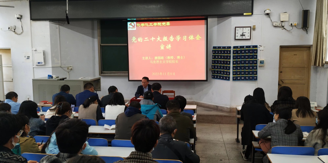 11月8日,球王会举办学习宣传贯彻党的二十大精神辅导报告会,邀请马克思主义公司经理唐国战教授作报告。化学化工公司党委书记郭鹏主持报告会,公司全体师生党员参加报告会。