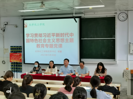 为深入推进学习贯彻习近平新时代中国特色社会主义思想主题教育,引领青年员工党员学深悟透习近平总书记关于“全面贯彻党的教育方针、加快推进教育现代化”有关论述精神实质,5月30日下午,化学化工公司党委书记郭鹏在教六101为公司全体员工党员上专题党课。公司党委副书记曲剧、专职组织员冷向宇、辅导员赵方方、翟成辉以及球王会全体员工党员认真听取党课。